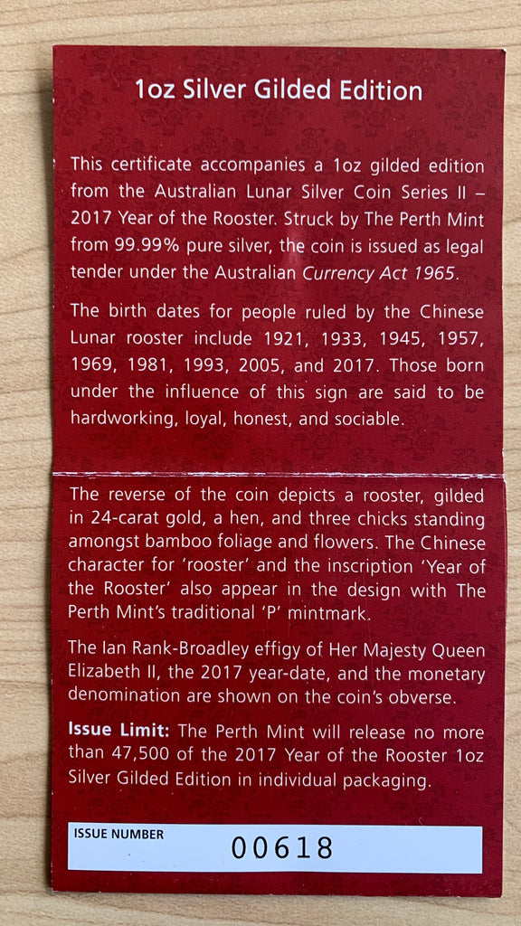 2017 Perth Mint Year of the Rooster Lunar Series II 1oz .999 Silver Proof Coin