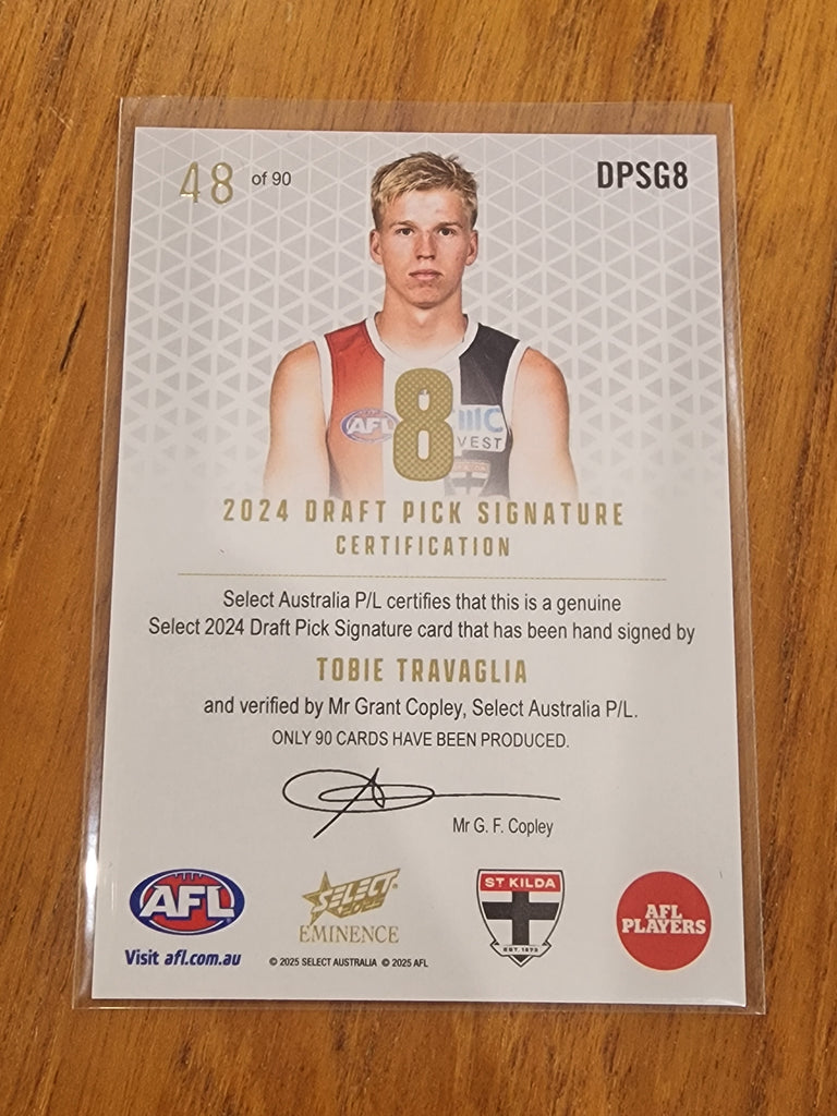 2025 AFL Select Eminence Draft Pick Signature Tobie Travaglia St Kilda DPSG8 48/90