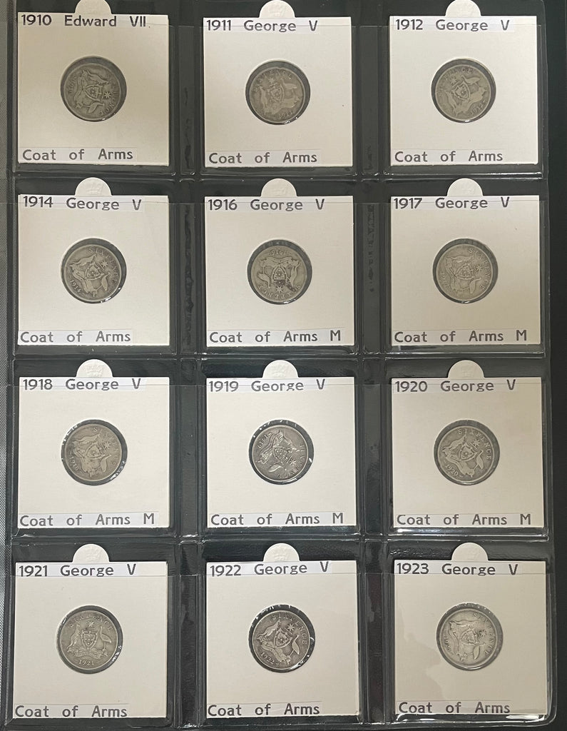 Australian Silver Six Pence 6d collection complete. 1910 to 1963. Many coins are in Extremely Fine Condition.