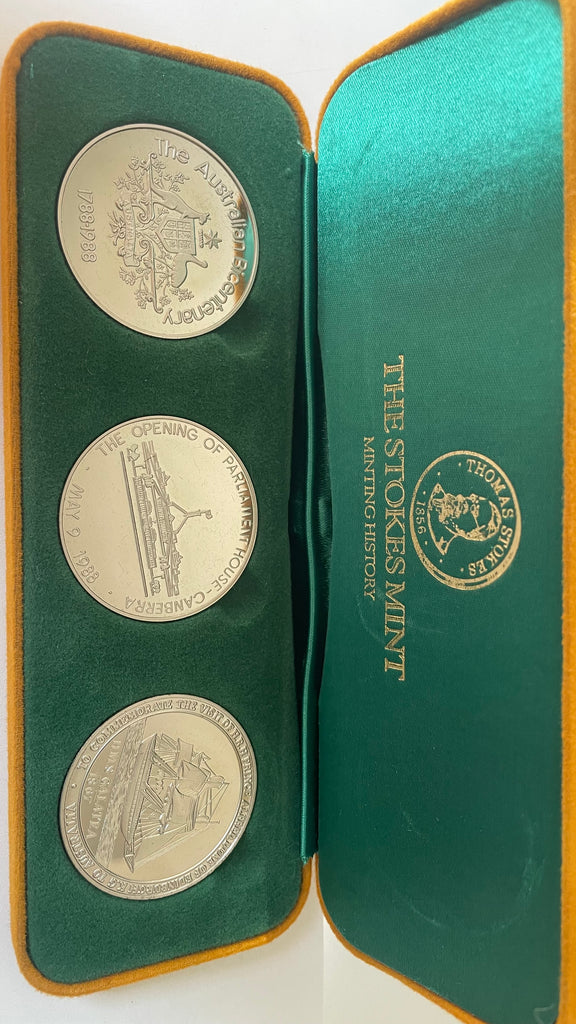 1988 Bicentennial / Royal Visit Sterling Silver 3 Medallion Set - Stokes Mint