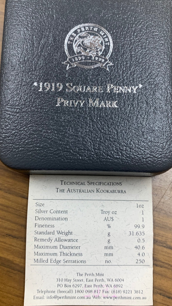 Australia 1999 Perth Mint Square Penny Privy Mark $1 Kookaburra 1oz Silver Coin