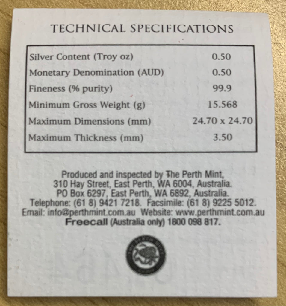 Australia 2005 Perth Mint 50c Kookaburra 1/2 oz 999 Square Silver Proof Coin