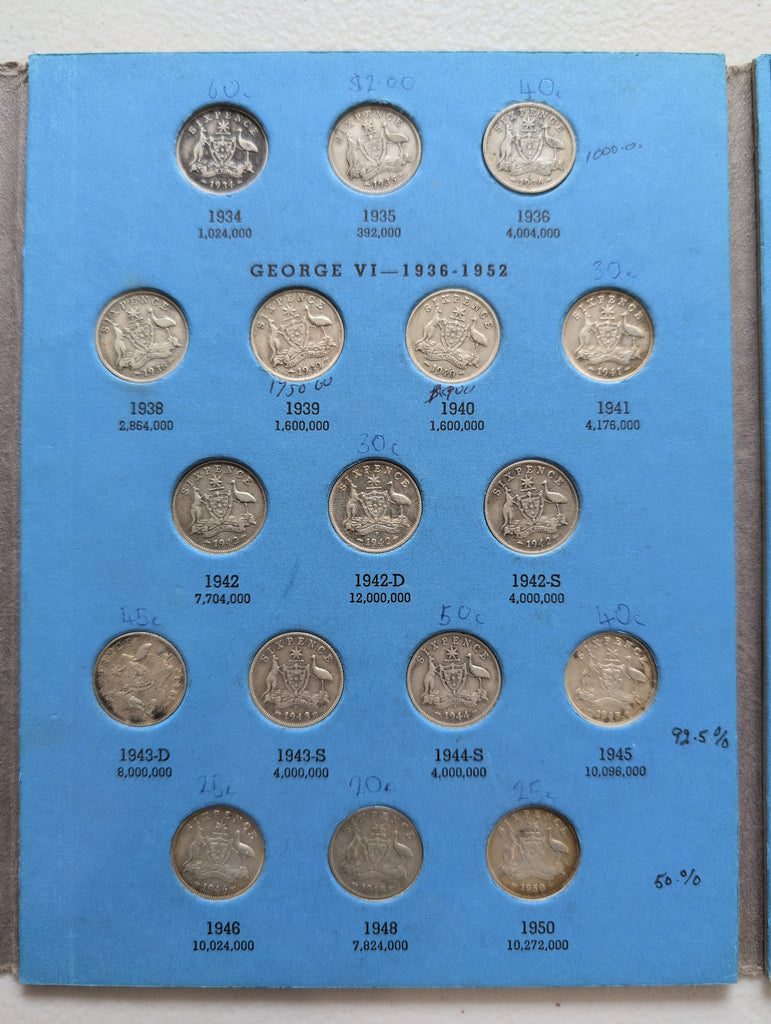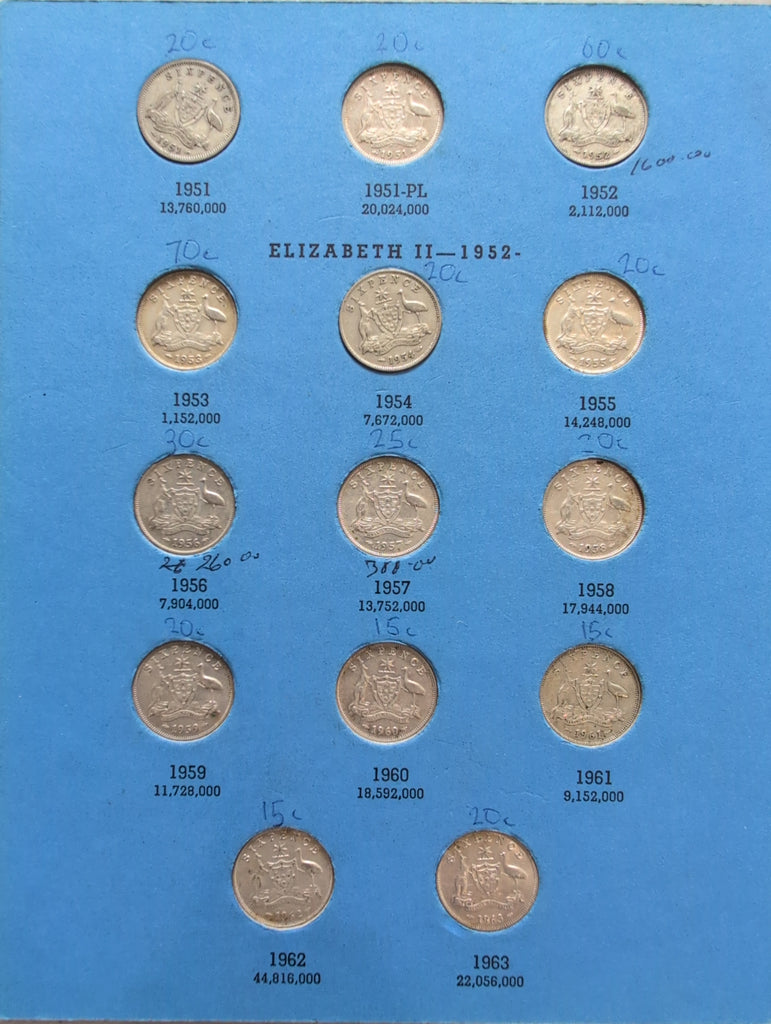 Australia 1910-63 Complete Set 6d Sixpence Silver Coins Very Good to about Uncirculated Condition