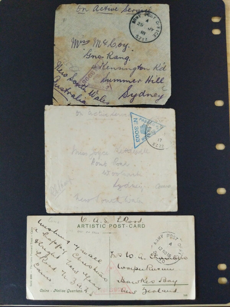 Australia NZ Gallipoli Egypt Palestine WW1 Stationary PO group 8 postcards home