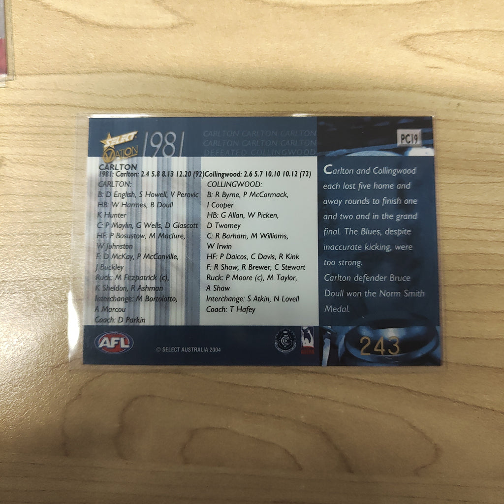 2004 Select Ovation 1981 Premiership Commemorative Carlton No.243