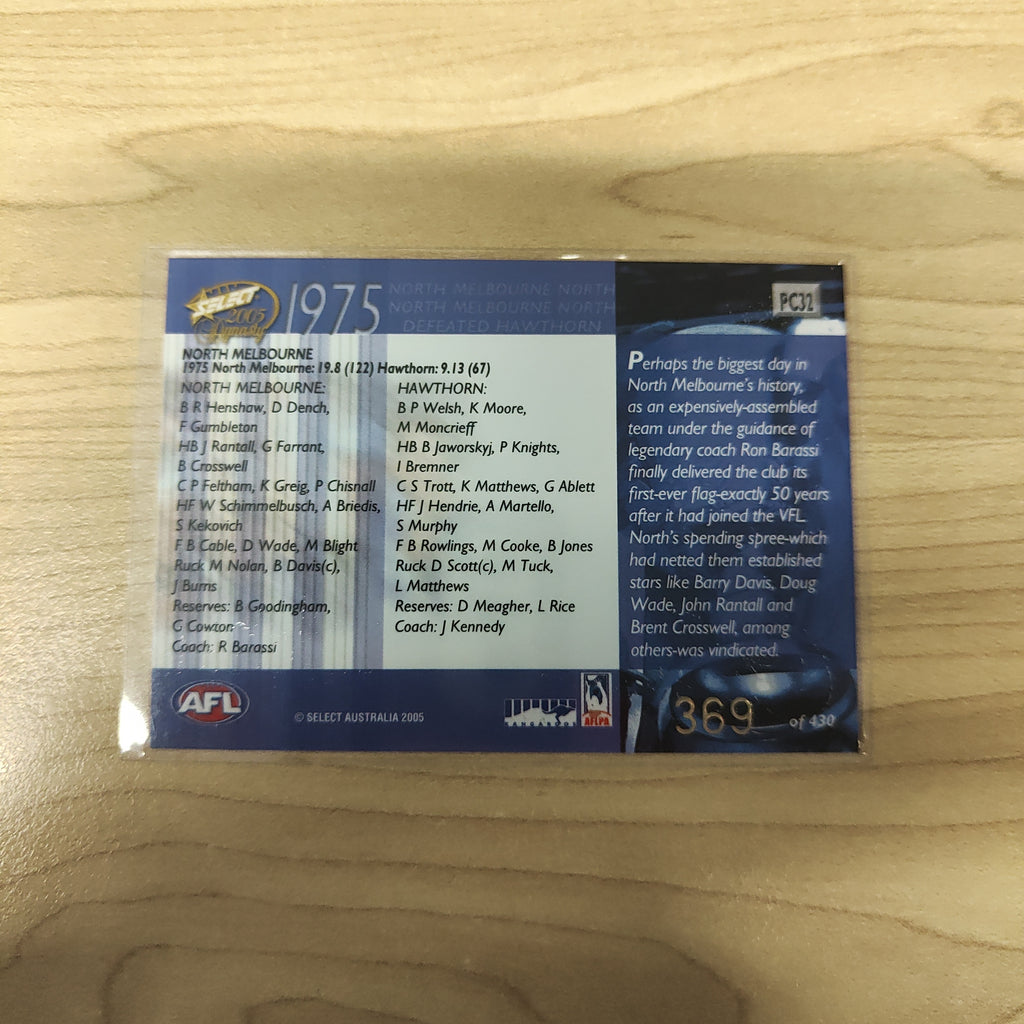 2005 Select Dynasty 1975 Premiership Commemorative North Melbourne No.369