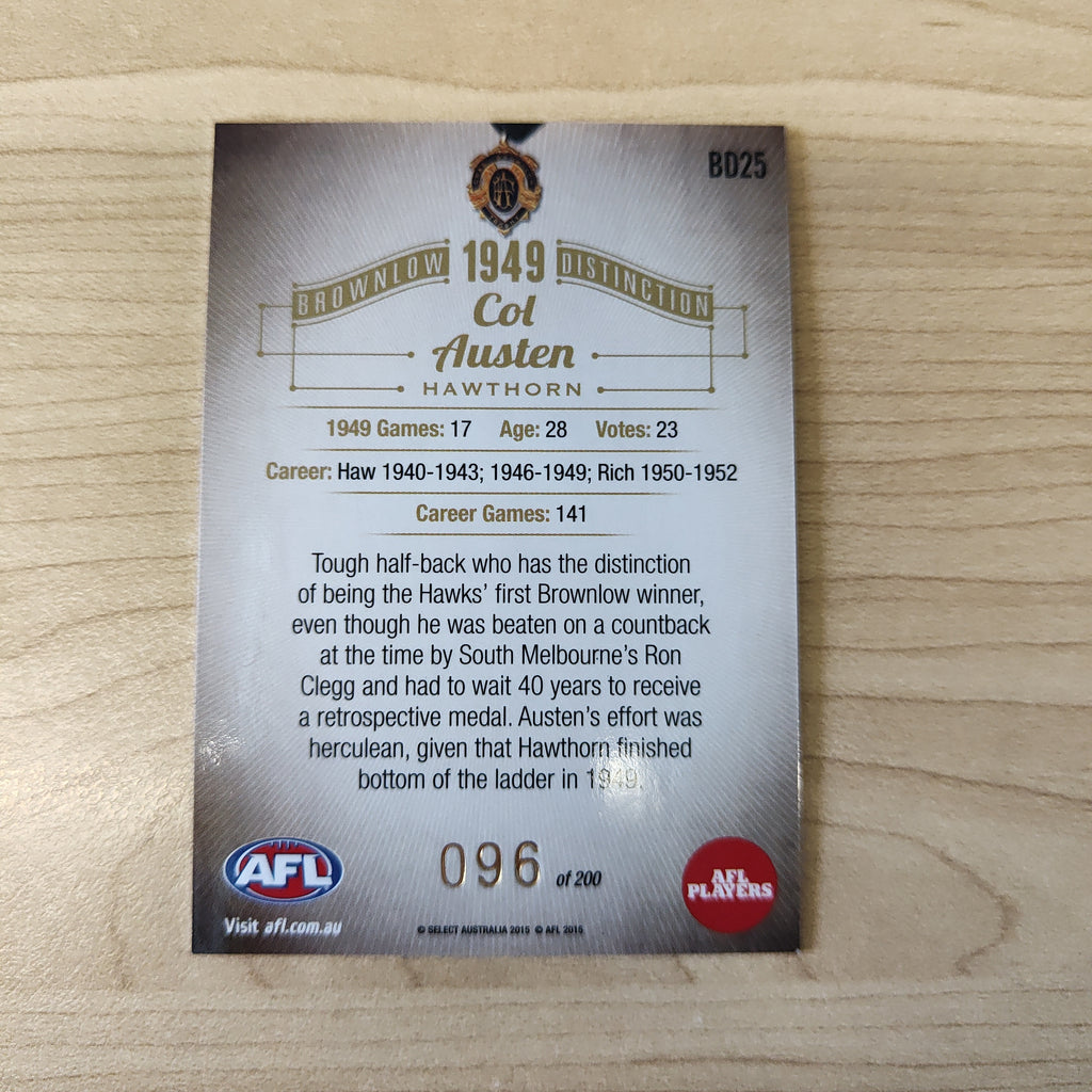 2015 Select Honours 2 Brownlow Distinction 1949 Col Austen Hawthorn