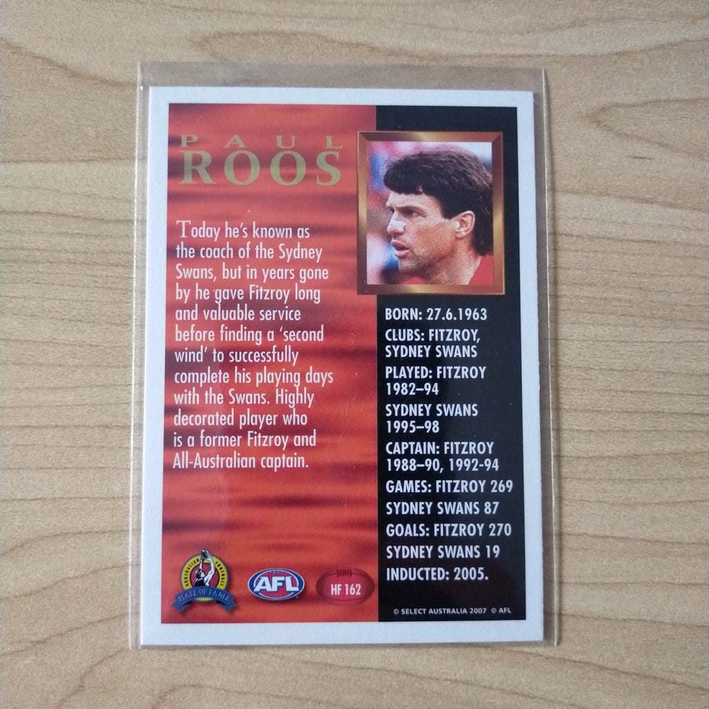 Select Hall of Fame Paul Roos Sydney Hand Signed Card