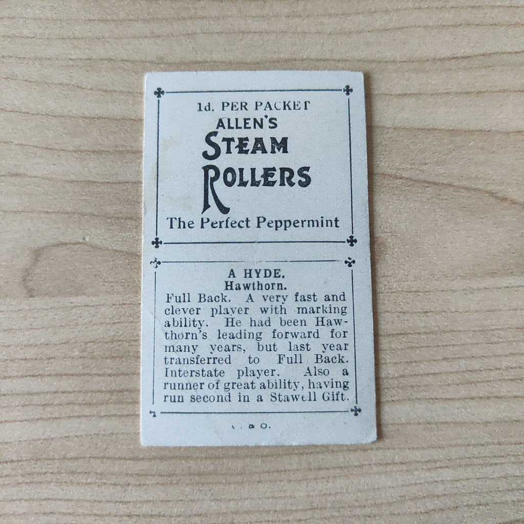 1934 VFL Football Allens Pennant A Hyde Hawthorn Cigarette Card