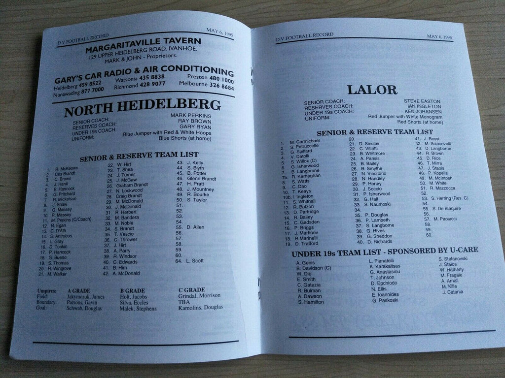 1995 6th May Diamond Valley Football League Football Record Vol. 39, No. 3