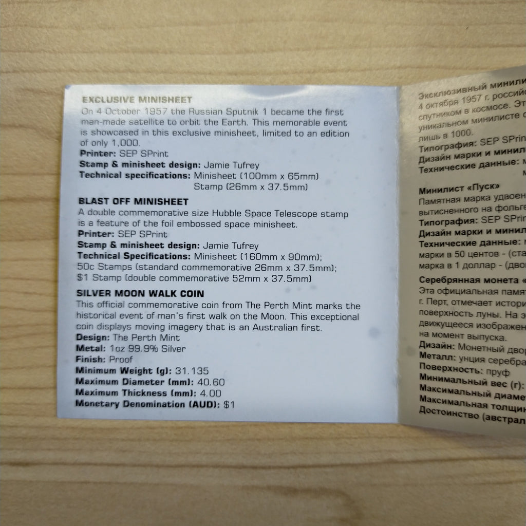 2004 Perth Mint Australia Post Blast Off 50 Years In Space $1 1oz .999 Silver Proof Coin and Stamp Set