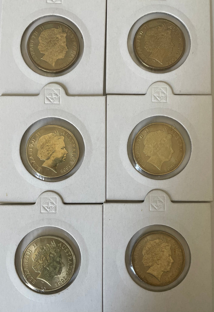 2008 Royal Australian Mint Land Series Set of 6 $1 Coins mounted in 2 x 2 coin mounts