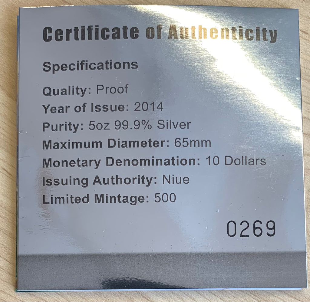 2014 Niue First World War Series 5oz 999 Silver Proof Coin Box Cert. Sent with Standard Parcel Delivery. Mintage only 500