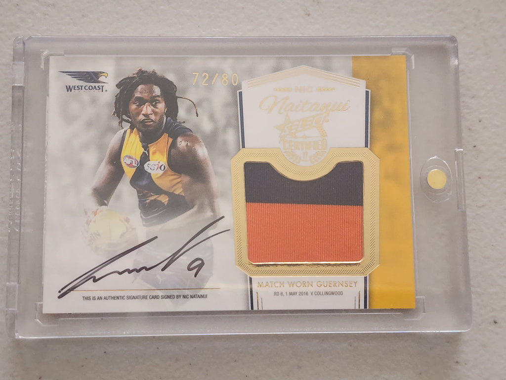 2017 AFL Certified Nic Naitanui West Coast Redemption Match Worn Guernsey signature card 72/80