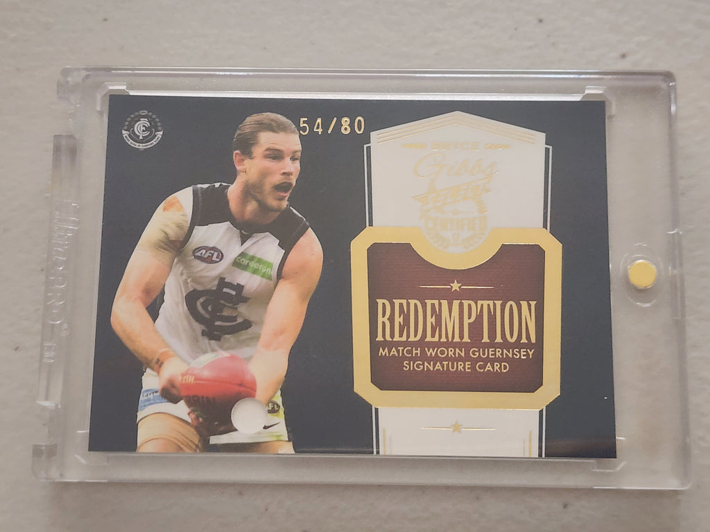 2017 AFL Select Certified Bryce Gibbs Redemption Match Worn Guernsey Signature Card Carlton 54/80