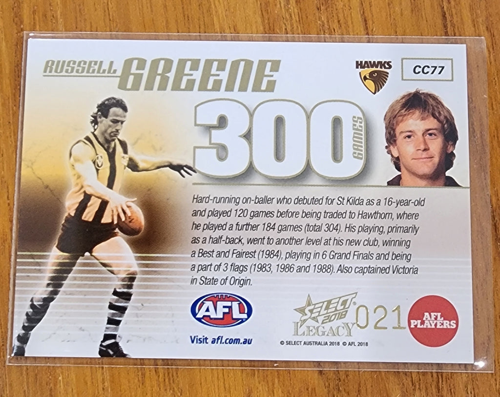 2018 AFL Select Legacy 300 games card Russell Greene Hawthorn CC77 #21