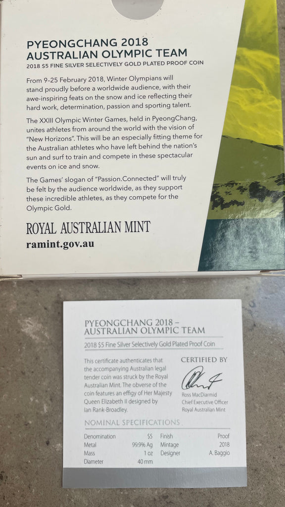 Australia 2018 RAM $5 Pyeongchang Winter Olympics Fine Silver Proof Coin