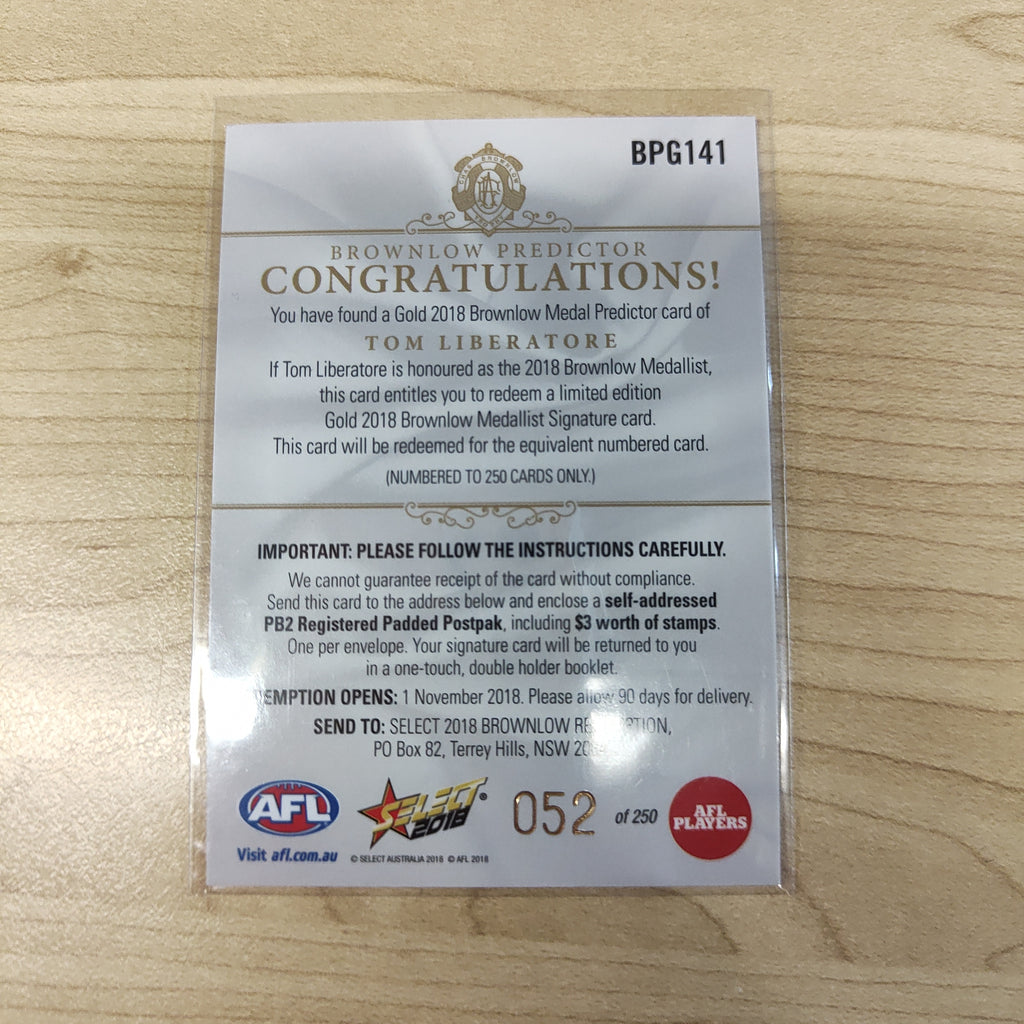 2018 Select Footy Stars Gold Brownlow Predictor Tom Liberatore Western Bulldogs 052/250