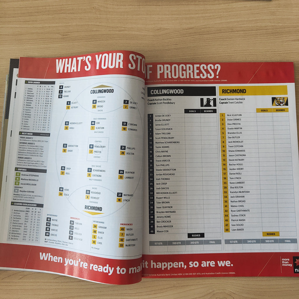 2019 July 26-28 Round 19 Collingwood v Richmond Football Record