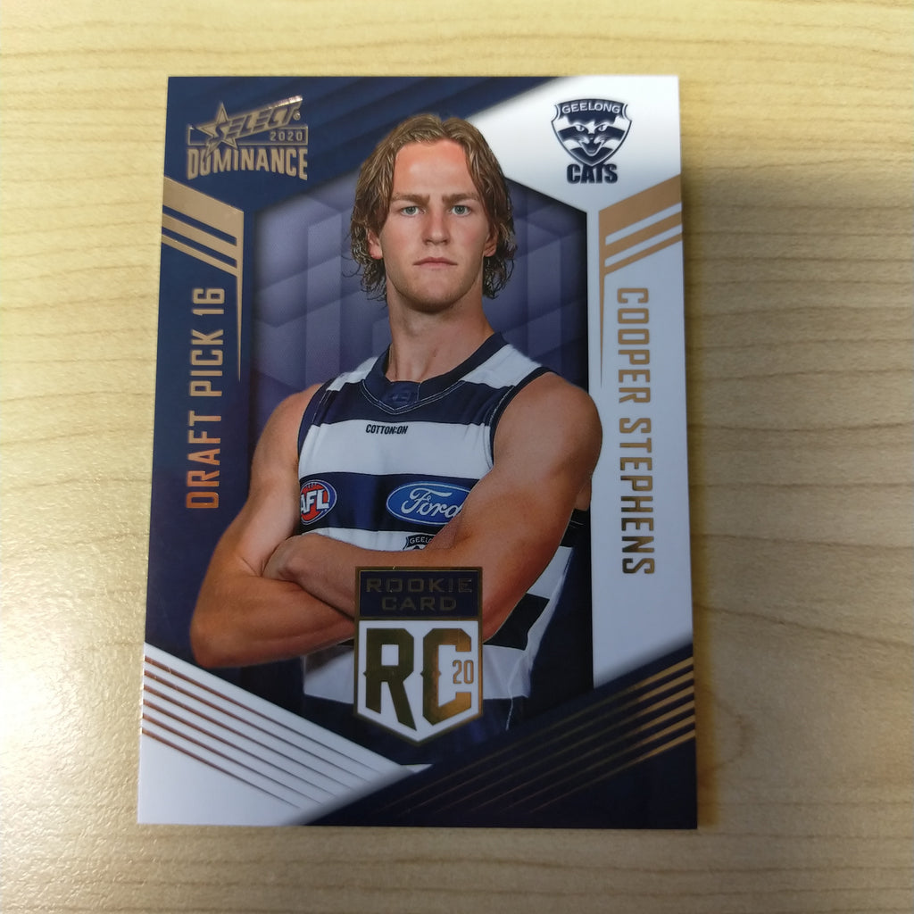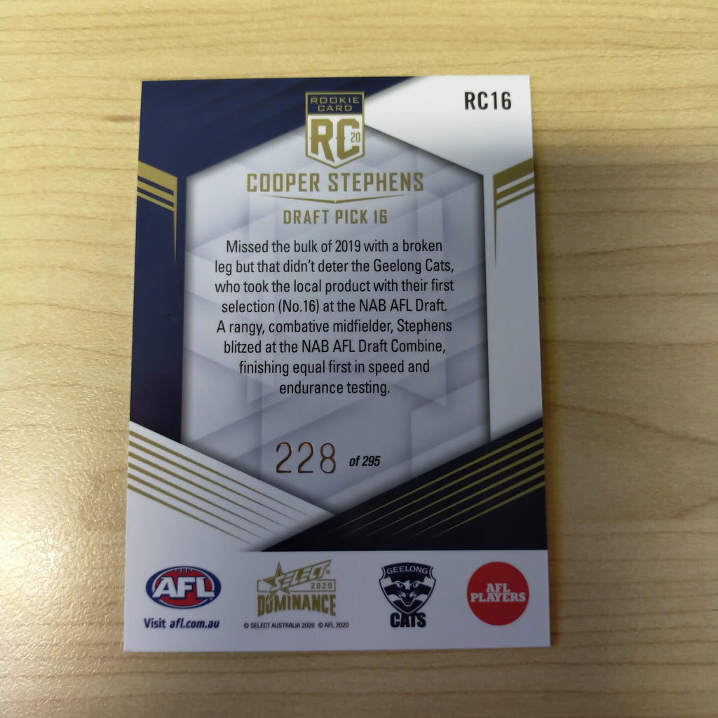 2020 AFL Select Dominance Cooper Stephens Geelong Rookie Card RC16 No. 228/295