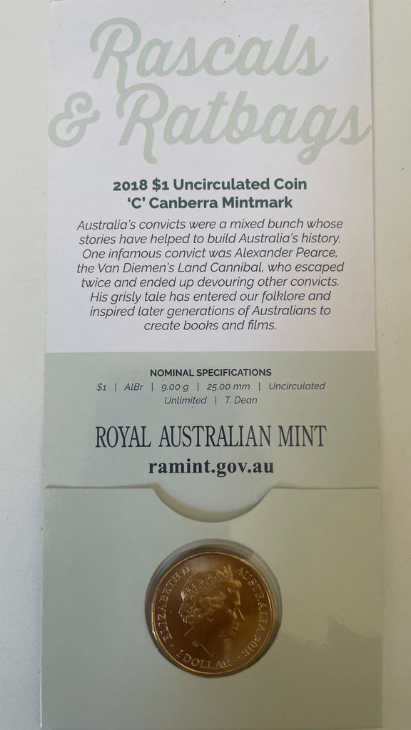 Australia 2018 $1 One Dollar RASCALS & RATBAGS Alexander Pearce 'C' mintmark