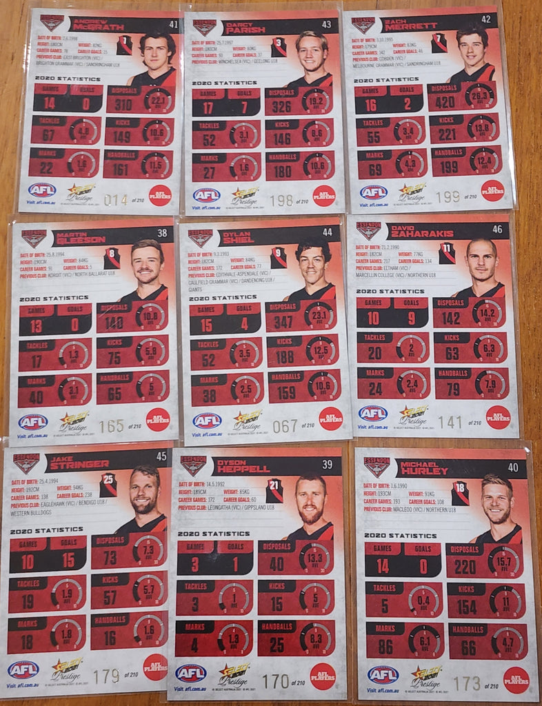 2021 AFL SELECT PRESTIGE RED PARALLEL ESSENDON BOMBERS FULL SET 38 - 46