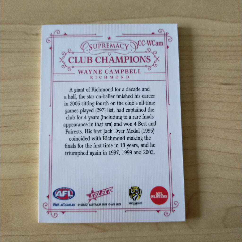 2021 AFL Select Supremacy Club Champions Wayne Campbell Richmond 08/60