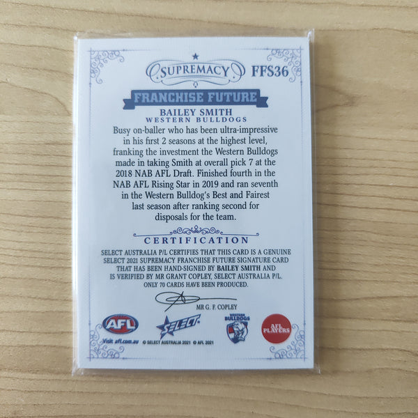 2021 Select Supremacy Franchise Future Signature Bailey Smith Western Bulldogs LOW NUMBER No.02/70