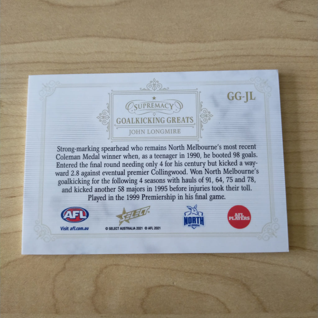 2021 Select Supremacy Goalkicking Greats John Longmire North Melbourne 31/50