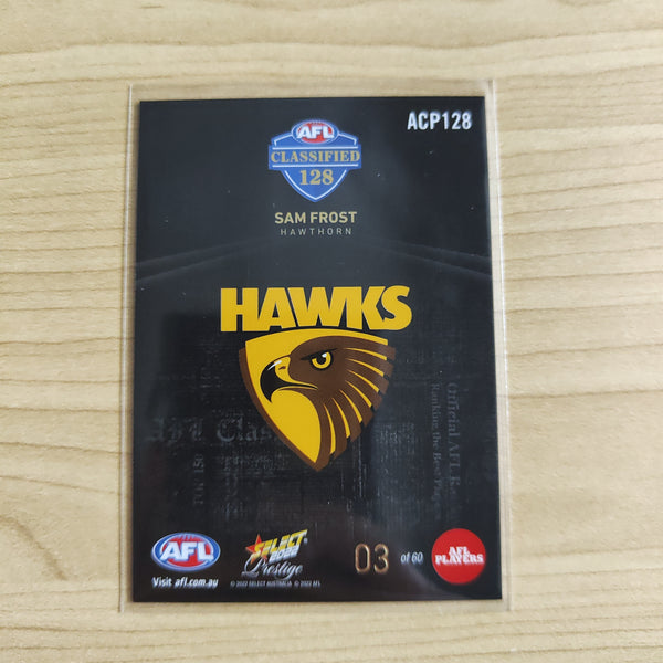 2022 Select Prestige Classified 128 Sam Frost Hawthorn LOW NUMBER 03/60