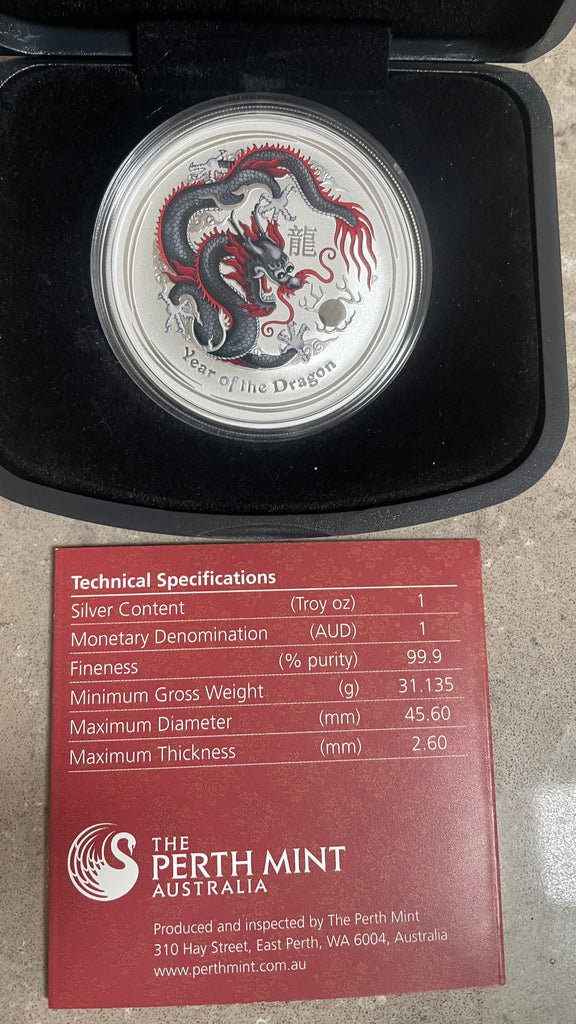 2012 Lunar New Year of the Dragon .999 One ounce Coloured Silver Coin