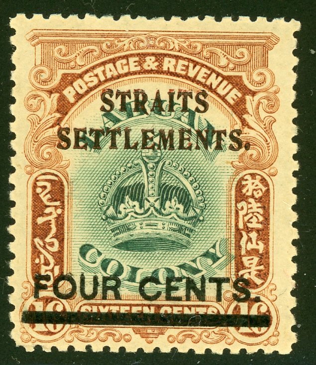 Malayan States Straits Settlements SG 145a 16c Ovpt 4c Postage & Revenue Stamp