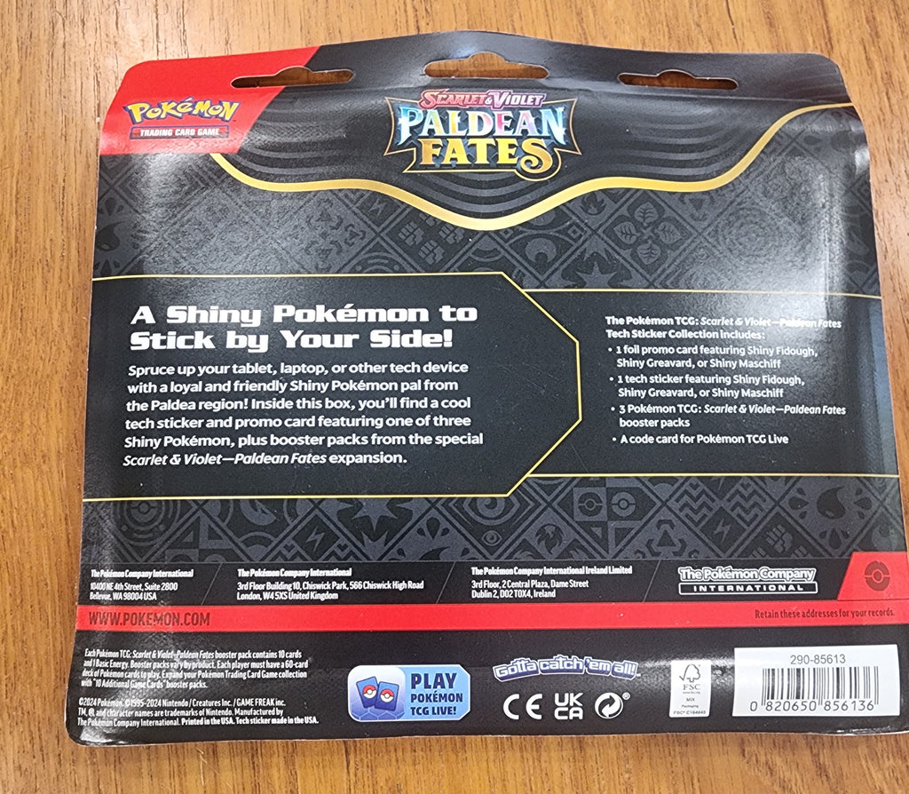 Pokemon Paldean Fates Tech Sticker Collection 3 Booster Pack Blister- Fidough