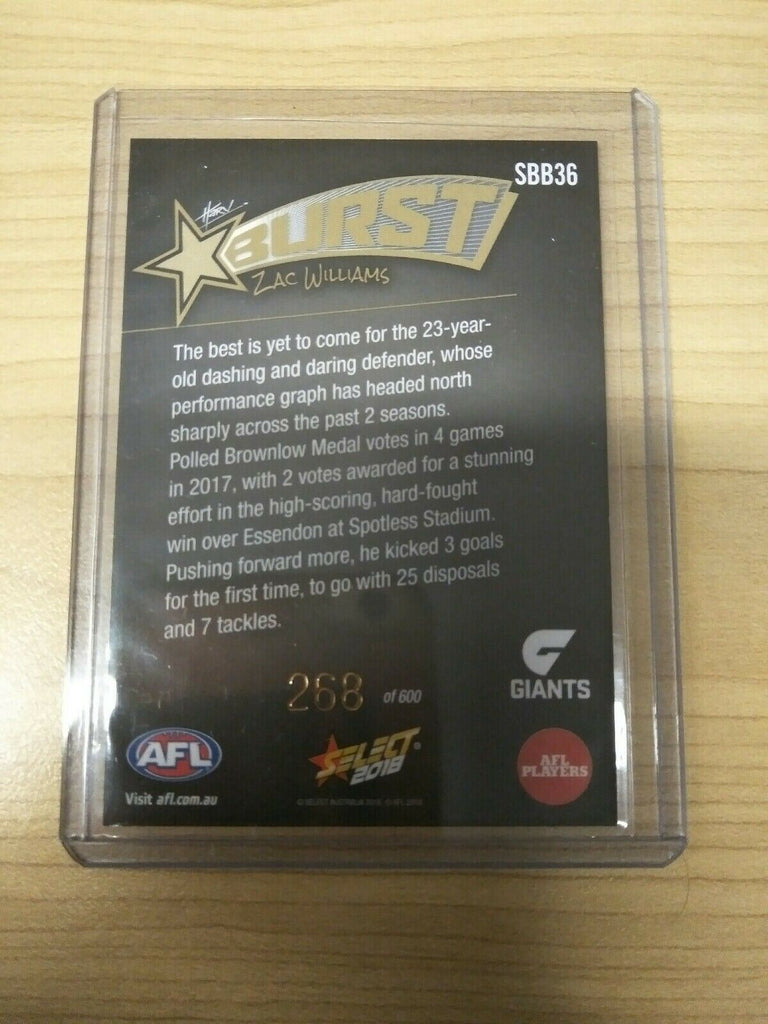 Select 2018 Black Starburst Zac Williams Giants No. 268/600