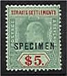 Straits Settlements Malayan States SG 167s $5 green and red KGV opt SPECIMEN MLH