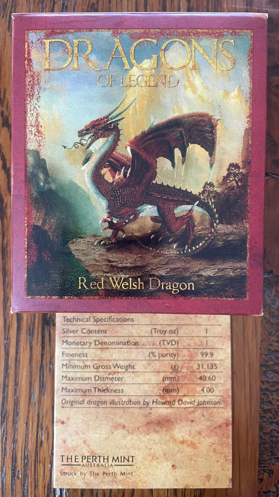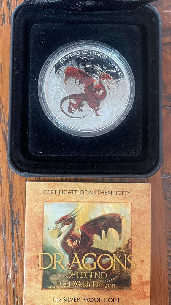 Tuvalu 2012 Perth Mint Coloured Dragons of Legend $1 Red Welsh Dragon Silver Proof Coin