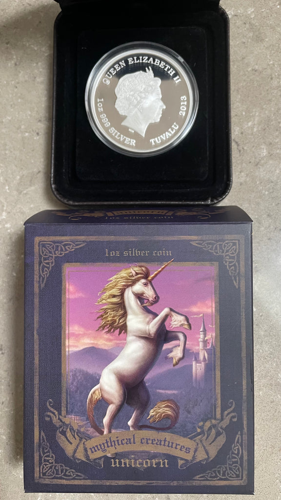 Tuvalu 2013 Perth Mint Coloured One Ounce 1oz Unicorn Silver Proof Coin